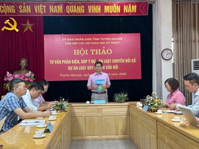 Tuyên Quang: Góp ý Dự án Luật Chuyển đổi số và Luật Quy hoạch Ngày 21/10, Liên hiệp hội tỉnh đã tổ chức hội thảo tư vấn, phản biện (TVPB), góp ý đối với 02 Dự án Luật: Luật Chuyển đổi số và Luật Quy hoạch (sửa đổi). Tham dự hội thảo có lãnh đạo đại diện các sở, ban ngành của tỉnh, các hội thành viên Liên hiệp hội tỉnh.