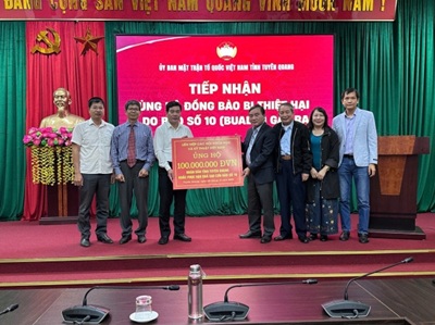 Liên hiệp Hội Việt Nam trao 100 triệu đồng ủng hộ đồng bào vùng bão lụt tỉnh Tuyên Quang Chiều tối ngày 28/10, tại trụ sở Cơ quan Uỷ ban MTTQ Việt Nam tỉnh Tuyên Quang, Đoàn công tác của Liên hiệp các Hội Khoa học và Kỹ thuật Việt Nam (Liên hiệp Hội Việt Nam) đã trao số tiền 100.000.000 đồng tới Uỷ ban MTTQ Việt Nam tỉnh Tuyên Quang để ủng hộ đồng bào khắc phục hậu quả nặng nề do cơn bão số 10 gây ra.