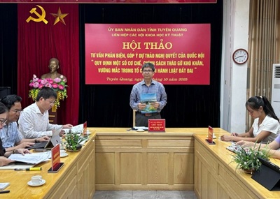 Tuyên Quang: Góp ý dự thảo Nghị quyết về cơ chế, chính sách đất đai Ngày 29/10, Liên hiệp hội tỉnh đã tổ chức hội thảo tư vấn, phản biện (TVPB), góp ý đối với dự thảo Nghị quyết của Quốc hội “Quy định một số cơ chế, chính sách tháo gỡ khó khăn, vướng mắc trong tổ chức thi hành Luật Đất đai” (gọi tắt là Nghị quyết về cơ chế, chính sách đất đai). Tham dự hội thảo có lãnh đạo đại diện các sở, ban ngành của tỉnh, các hội thành viên Liên hiệp hội tỉnh.