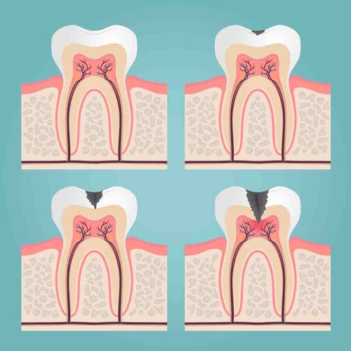 Viêm tủy răng tiến triển qua 3 giai đoạn, với mức độ bệnh và triệu chứng ngày càng nặng. Càng về sau, bệnh càng khó điều trị, thậm chí có thể phải loại bỏ tủy chết.