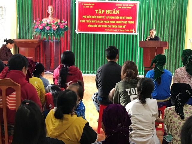 Ngày 17-19/3, Liên hiệp các Hội Khoa học và Kỹ thuật tỉnh Tuyên Quang phối hợp với UBND các xã: Niêm Sơn, Tát Ngà tổ chức 8 lớp tập huấn phổ biến kỹ thuật trồng trọt, kỹ thuật chăn nuôi theo hướng an toàn sinh học cho 480 học viên thuộc 12 thôn của các xã: Niêm Sơn, Niêm Tòng (nay là xã Niêm Sơn); Tát Ngà, Nậm Ban (nay là xã Tát Ngà), tỉnh Tuyên Quang, nhằm mang lại hiệu quả kinh tế cho nông dân.